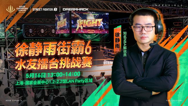 5月16日13■★◆★■:00-14:00★◆★◆◆★,知名NBA解说徐静雨将来到英雄亚冠ACL总决赛x街头霸王6现场,与水友开启擂台挑战赛★◆◆。这一次,他不聊篮球,只拼操作!无论你是街霸大神还是格斗萌新,都有机会与徐静雨老师1v1擂台对决!