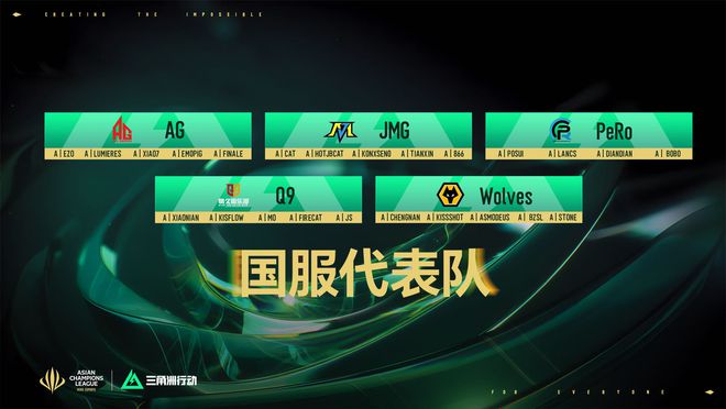 AG、JMG◆◆、PeRo★■■◆、情久、狼队组成的TEAM A强势突围,斩获国服代表队资格。5月17日-18日,中日韩泰各个赛区代表战队将登陆英雄亚冠ACL总决赛舞台,在国际化赛场续写战术FPS新篇章。