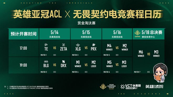 本次英雄亚冠ACL x云顶之弈赛事中,首次采用4V4团体赛模式◆■■★◆,采用双败淘汰制(BO3)决出季军席位◆◆,BO5终极对局锁定冠军归属。英雄亚冠ACL x无畏契约电竞赛事独创动态赏金机制,低排位队伍逆袭胜利可获双倍奖金,单队最高奖金可达百万元人民币,全赛季总奖金超115万元人民币■■。